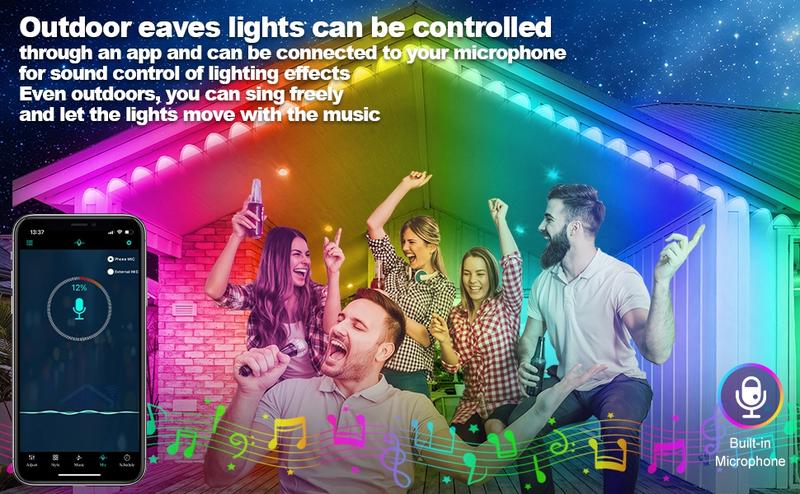 What sets our Eave Lights apart is their ability to connect to a microphone, enabling sound-responsive features.This means that as you sing or play music outdoors, the lights will synchronize with the rhythm and beat, creating a dynamic visual experience that adds excitement to your events.Imagine hosting a backyard karaoke night where the lights dance to your favorite songs, enhancing the fun and energy in the atmosphere.