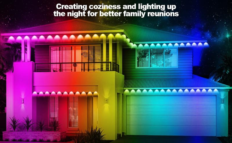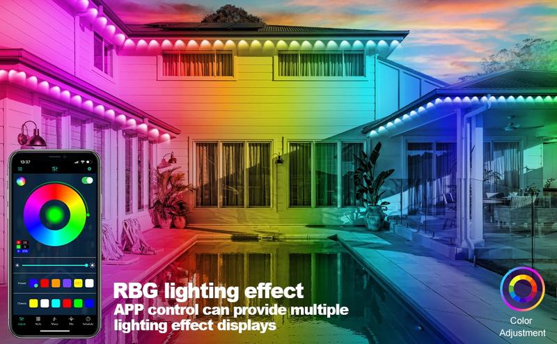 Our Outdoor Eave Lights bring a new level of interactivity and enjoyment to your outdoor gatherings.Conveniently controlled through an intuitive app, these lights allow you to customize lighting effects effortlessly, setting the perfect mood for any occasion right from your smartphone.